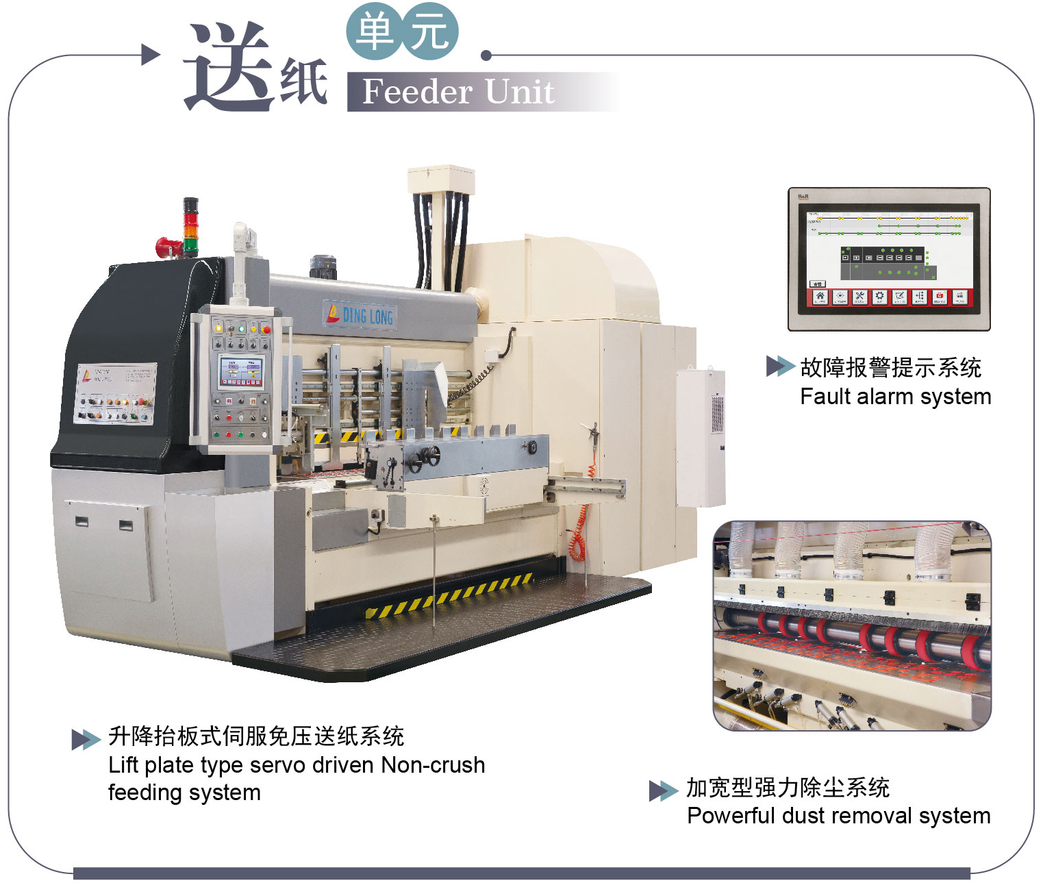 • 升降抬板式伺服免压送纸系统 一 一 防护纸板边压